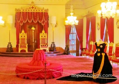 ツアーでガイドをしてもらえるのは、カヒリルームとハワイアンホール1階の一部です。